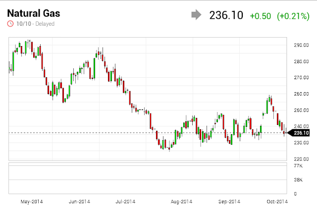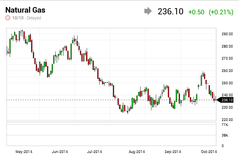 On the New York Mercantile Exchange, natural gas for delivery in November sank to a daily low of $3.559 per million British thermal units on Friday, a level not seen since November 20, 2013.