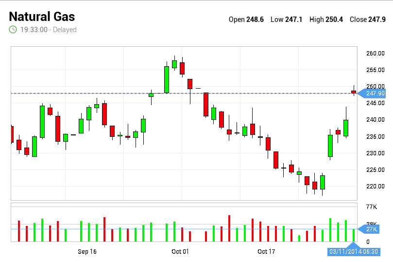 On the New York Mercantile Exchange, natural gas for delivery in December tumbled 22.3 cents, or 4.97%, on Friday to settle at $4.266 per million British thermal units by close of trade.